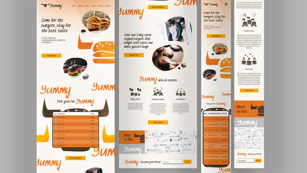Yummy - FoodTrack - Hamburger Delights Website Figma Template - One's page, Landing Page RWD